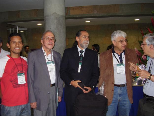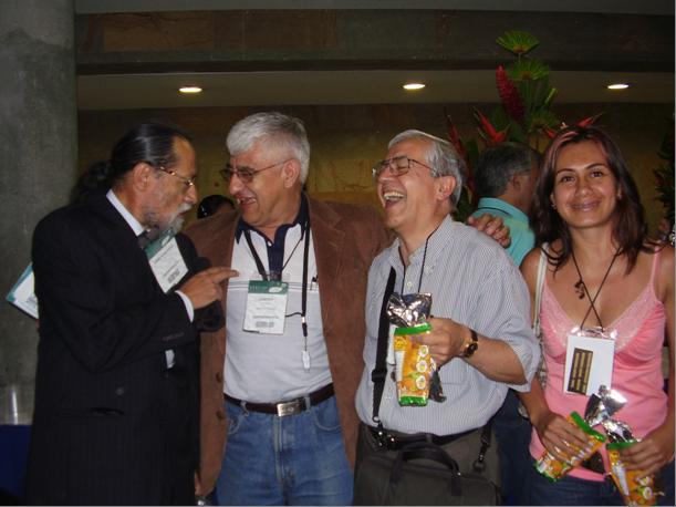 Foto 3. Algunos asistentes al congreso. Entre ellos (al centro) Jesús Hernando Pérez, Efraín Alberto Hoyos y Diego Pareja Heredia. De camisa color guayaba Darío Álvarez de la Universidad del Quindío.