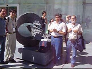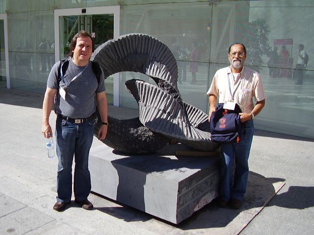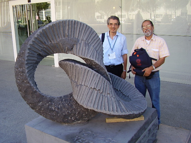 Con el profesor Guillermo Rodríguez de la Universidad Nacional haciendo sombra a las cintas de Moebius.
